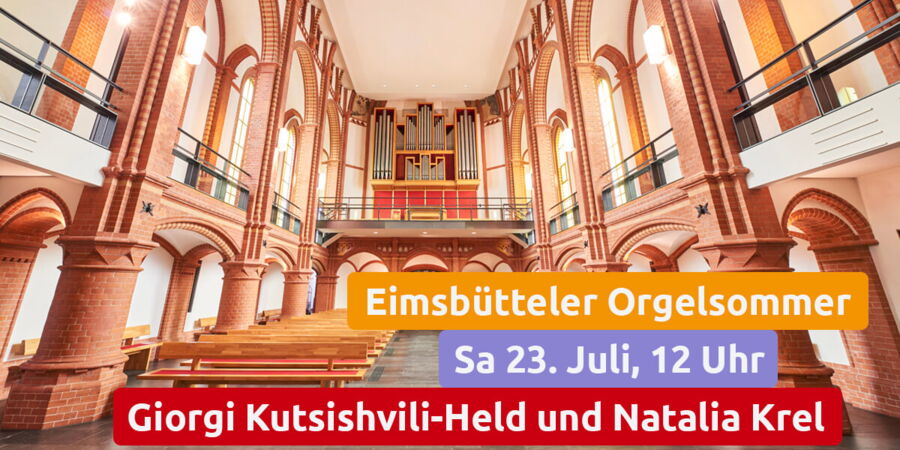 Im Rahmen des 20. Eimsbütteler Orgelsommers spielen diesen Samstag in der Christuskirche ab 12 Uhr Giorgi Kutsishvili-Held auf der Querflöte sowie Natalia Krel auf der Orgel Werke von J.S. Bach, G.F. Händel, G. Ph. Telemann.
