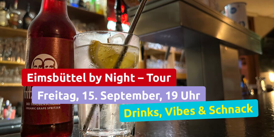 Bitte meldet Euch möglichst bis 14.09.2023 bei Julie Krüger (julie.krueger@ev-ke.de) an. Die Teilnahme ist kostenlos, Eure Drinks unterwegs müsst Ihr allerdings selbst bezahlen.