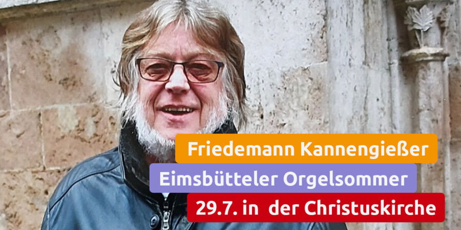 Im Rahmen des 21. Eimsbütteler Orgelsommers spielt diesen Samstag, 29.07. in der Christuskirche ab 12 Uhr Friedemann Kannengießer (Mühlhausen) an der Orgel Werke von Frescobaldi, Bach, Reger u.a..