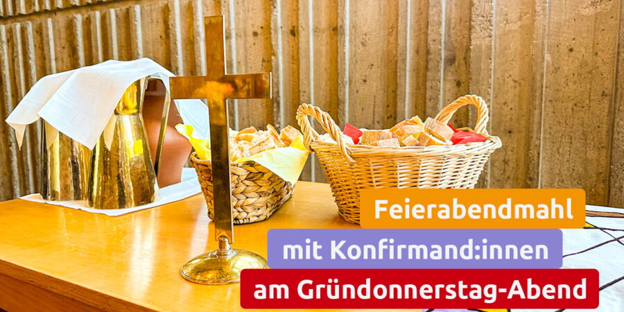 Im Feierabendmahls-Gottesdienst tun wir das auf besondere Weise: Es gibt im Gottesdienst ein richtiges gemeinsames Essen (Buffet mit Abendbrot direkt im Kirchsaal), das von der Abendmahls-Liturgie eingerahmt wird. Eingeladen sind neben allen Konfis (die zum Teil das Feierabendmahl als Projekt selbst vorbereiten) auch Interessierte jeden Alters!
