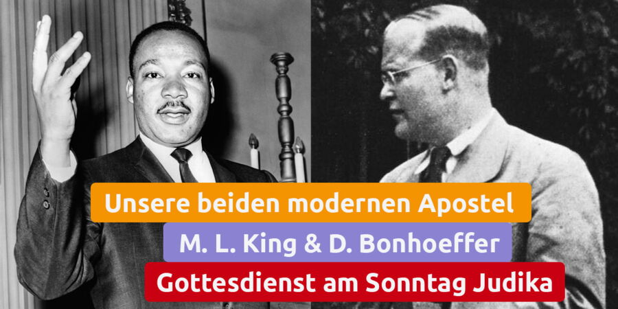 Der 6. April liegt zwischen dem Todestag von Martin Luther King (4.4.) und dem von Dietrich Bonhoeffer (9.4.). Das nehmen wir zum Anlass, uns von Texten der beiden modernen Apostel begleiten und inspirieren zu lassen.