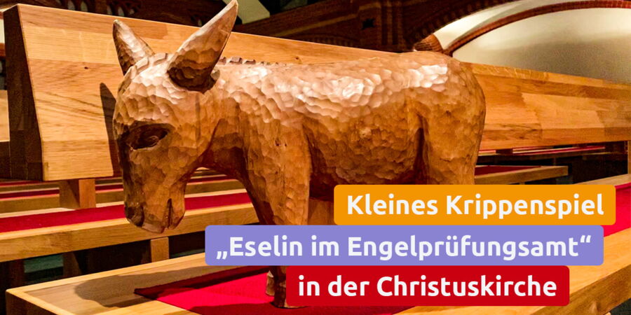 Wir singen zusammen und beten und begleiten eine kleine Eselin, die unbedingt ein Engel werden will, und hören die Geschichte von der Heiligen Nacht.