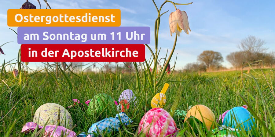 Herzliche Einladung zum Ostergottesdienst um 11 Uhr in der Apostelkirche! Nach dem Gottesdienst gibt es ein gemeinsames Osterfrühstück.