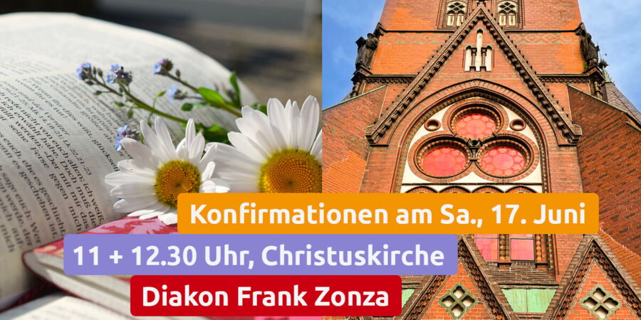 Diakon Frank Zonza, der die Konfigruppe geleitet hat, freut sich mit den Konfis zusammen auf einen (jeweils) schönen, festlichen Konfirmationsgottesdienst. Übrigens: Fünf Konfis aus der Gruppe machen weiter als Teamer:innen. Super!