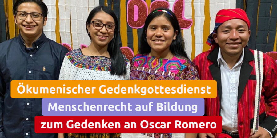 Mit Vertretern des Erzbistums Hamburg und dem Zentrum für Mission und Ökumene (ZMÖ) gedenken wir Oscar Romeros mit Gästen aus Guatemala, wo Bildung nicht für jeden erreichbar ist. Vier indigene Stipendiaten und der Leiter des Projektes IJA’TZ vom Samenkorn e.V. Stipendienwerk werden den Gottesdienst auf ihre Weise mitgestalten. Das Projekt IJA’TZ verhilft seinen Stipendiaten zum Menschenrecht auf Bildung und Unversehrtheit.