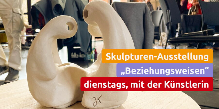 Ausstellung "Beziehungsweisen" im Gartenzimmer der Apostelkirche mit den Skulpturen von Jadwiga Krupa. Immer dienstags im April, 11.00 bis 14.00 Uhr. Die Künstlerin selbst begrüßt Euch und freut sich, mit Euch in den Dialog zu kommen. Herzliche Einladung!