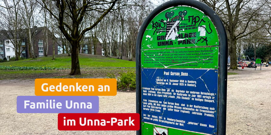Auf dem Gebiet des heutigen Unna-Parks gründete Unna (1850-1929) eine Hautklinik, die von seinen Nachfahren Karl und dessen Frau Marie, von Paul und Georg Wilhelm Unna weitergeführt wurde. 1943 wurde die Klinik von Bombentreffern zerstört. Jüdischen Menschen war der Zutritt zum Luftschutzbunker verboten. So kamen der Arzt Dr. Paul Unna, die jüdischen Mitarbeitenden und Patienten ums Leben, andere Angehörige der Familie Unna wurden von den Nazis umgebracht.