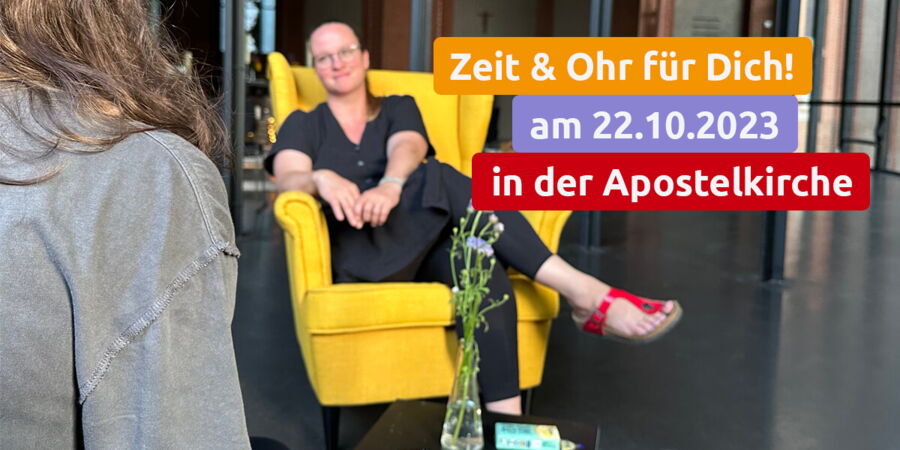 Einmal im Monat feiern wir im Kerzenschein in der Apostelkirche von 17:00 – 17:30 Uhr eine Taizé-Andacht mit einem kleinen Impulsgedanken, Stille und einfachen Liedversen. Von 17:30 – 19:00 Uhr könnt Ihr dann für jeweils 30 Min. Platz nehmen in einem Sessel und findet ein Ohr und ein Herz und einen wachen Geist als Gegenüber in einem Seelsorgegespräch. Wir Pastor:innen und ehrenamtliche ausgebildete Seelsorger:innen sind gern für Euch da!